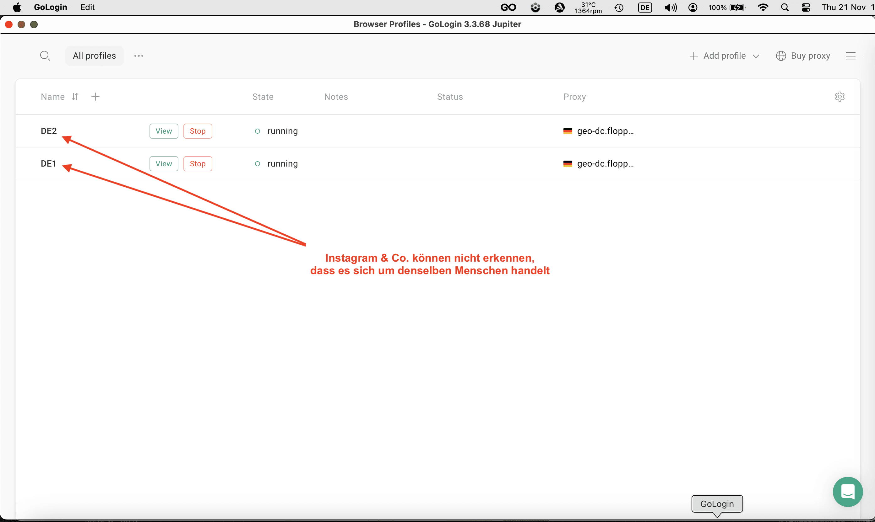 In einem anderen Video zeige ich euch wie man Gologin einrichtet