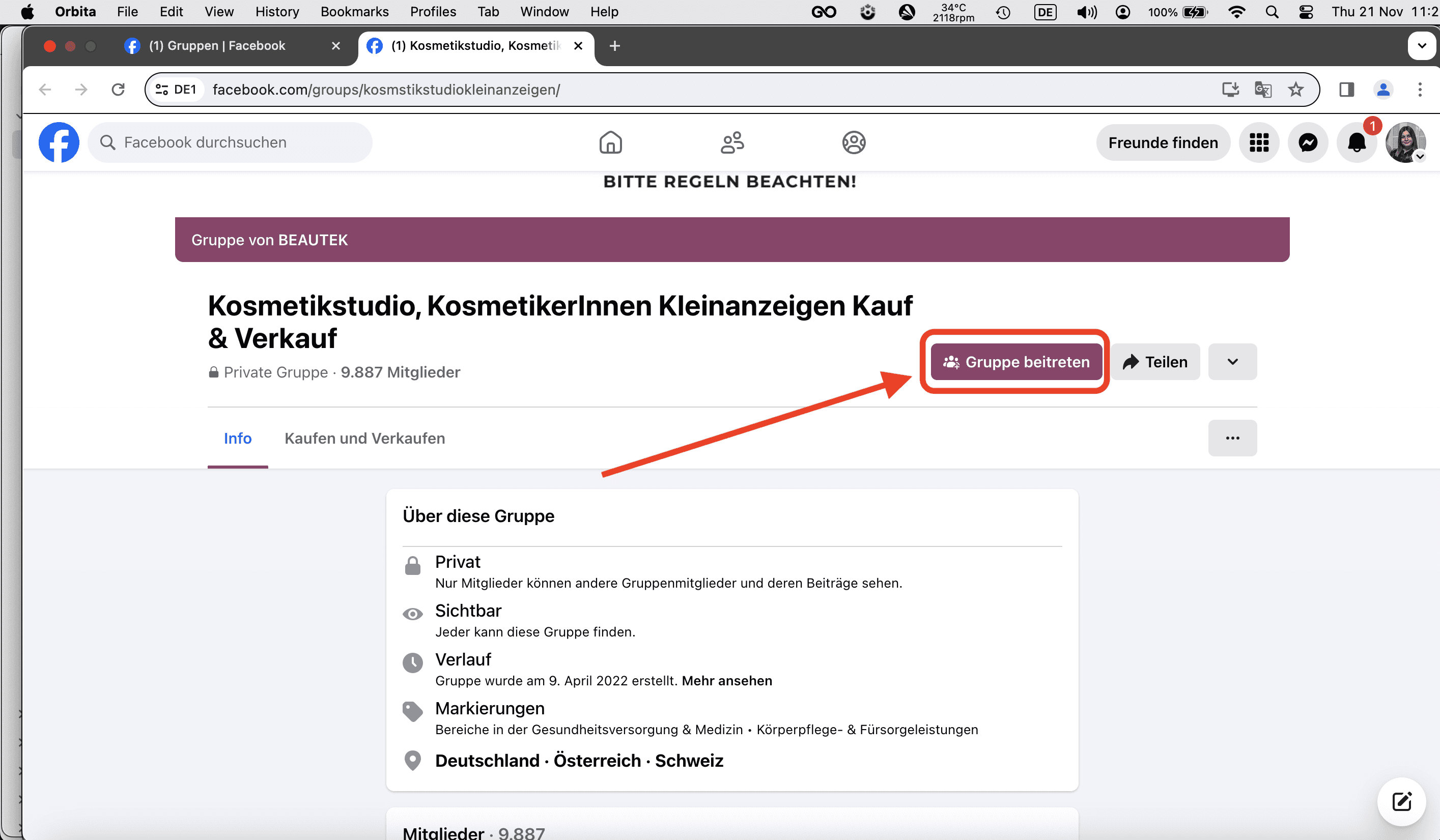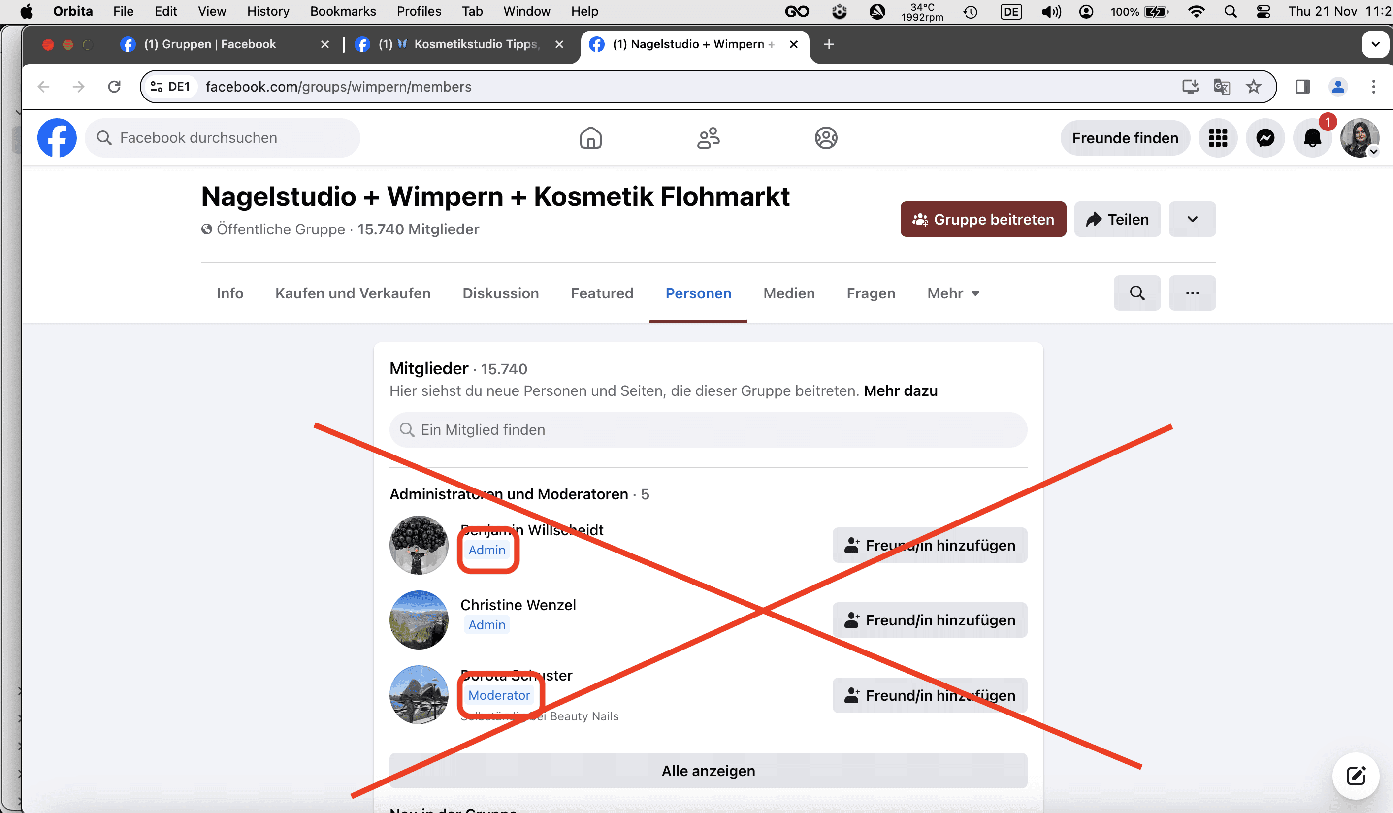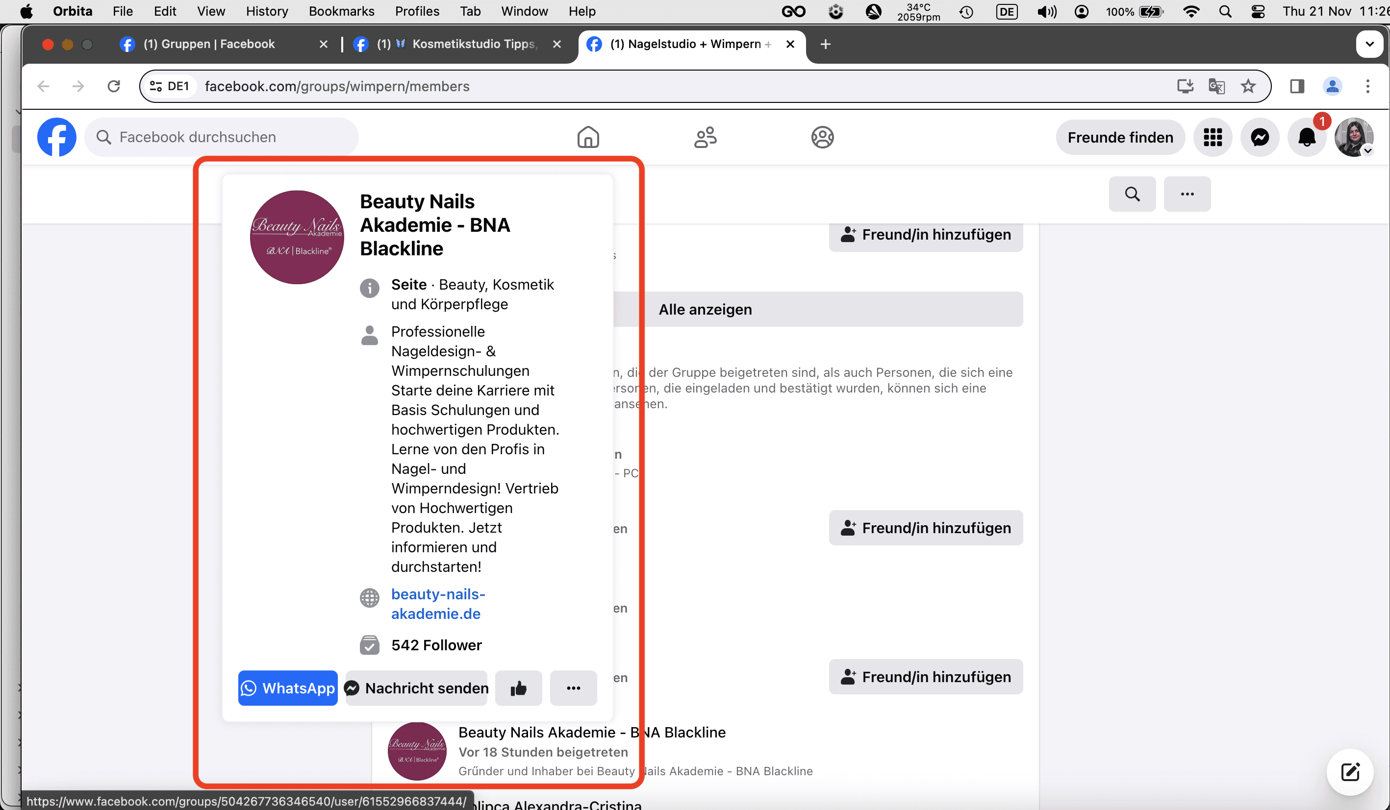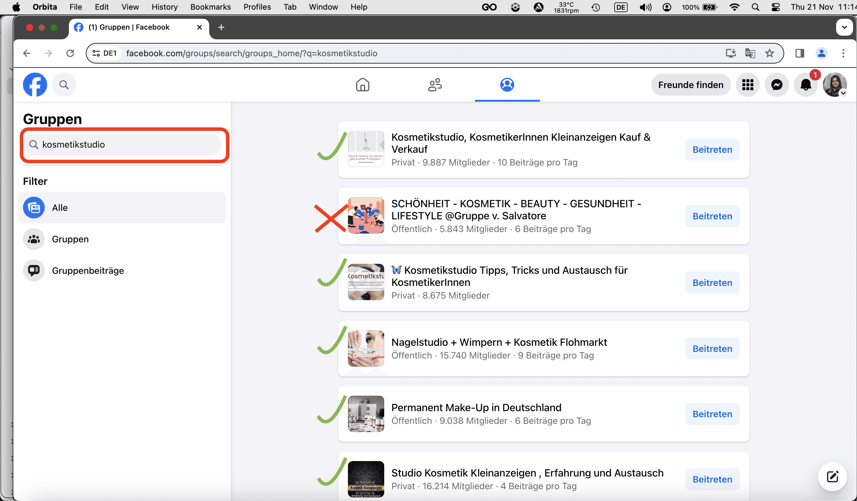 Schaut nach Gruppen, wo sich Kosmetikstudios hauptsächlich anmelden, nicht Gruppen, wo hauptsächlich Privatleute reingehen