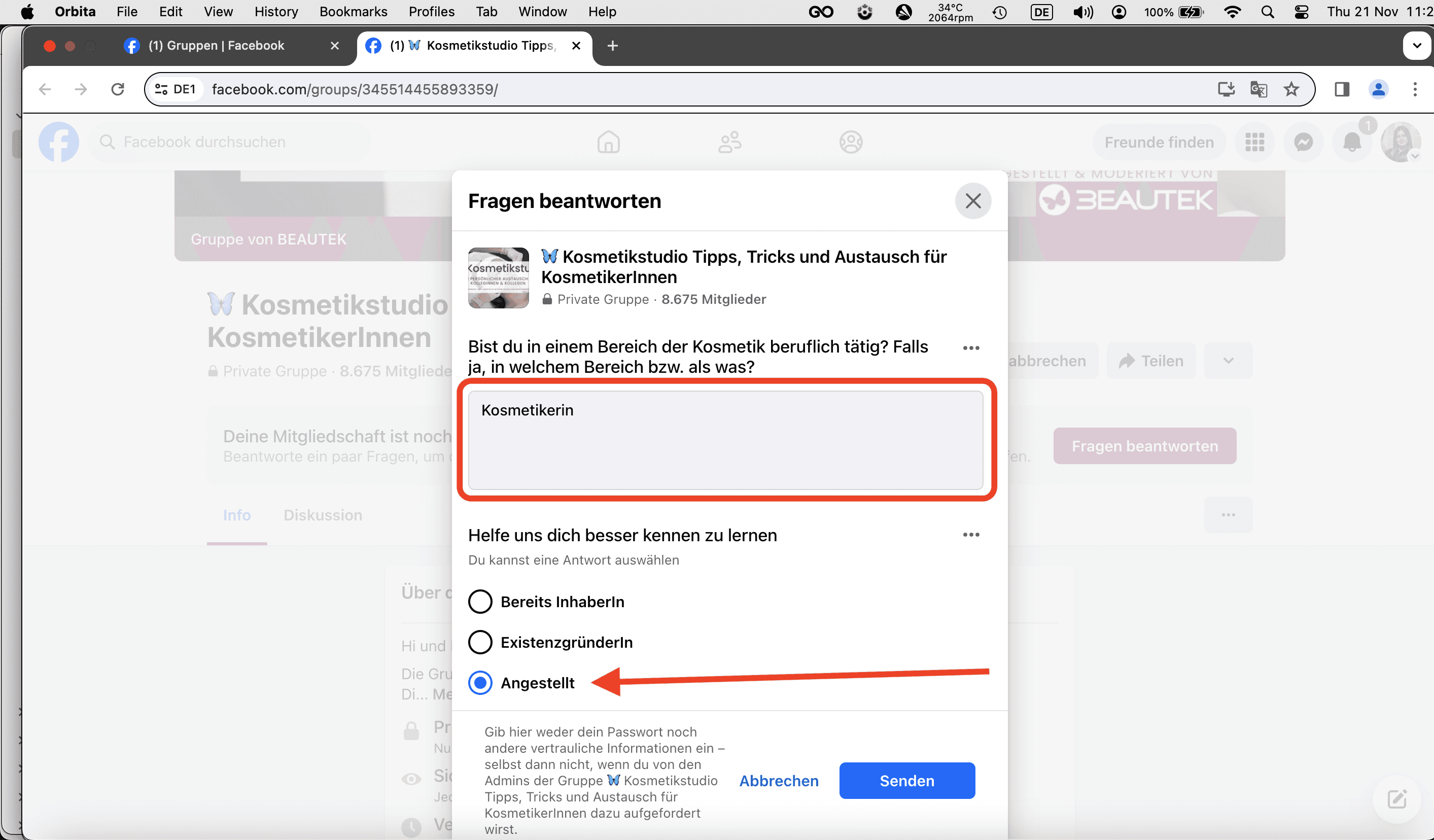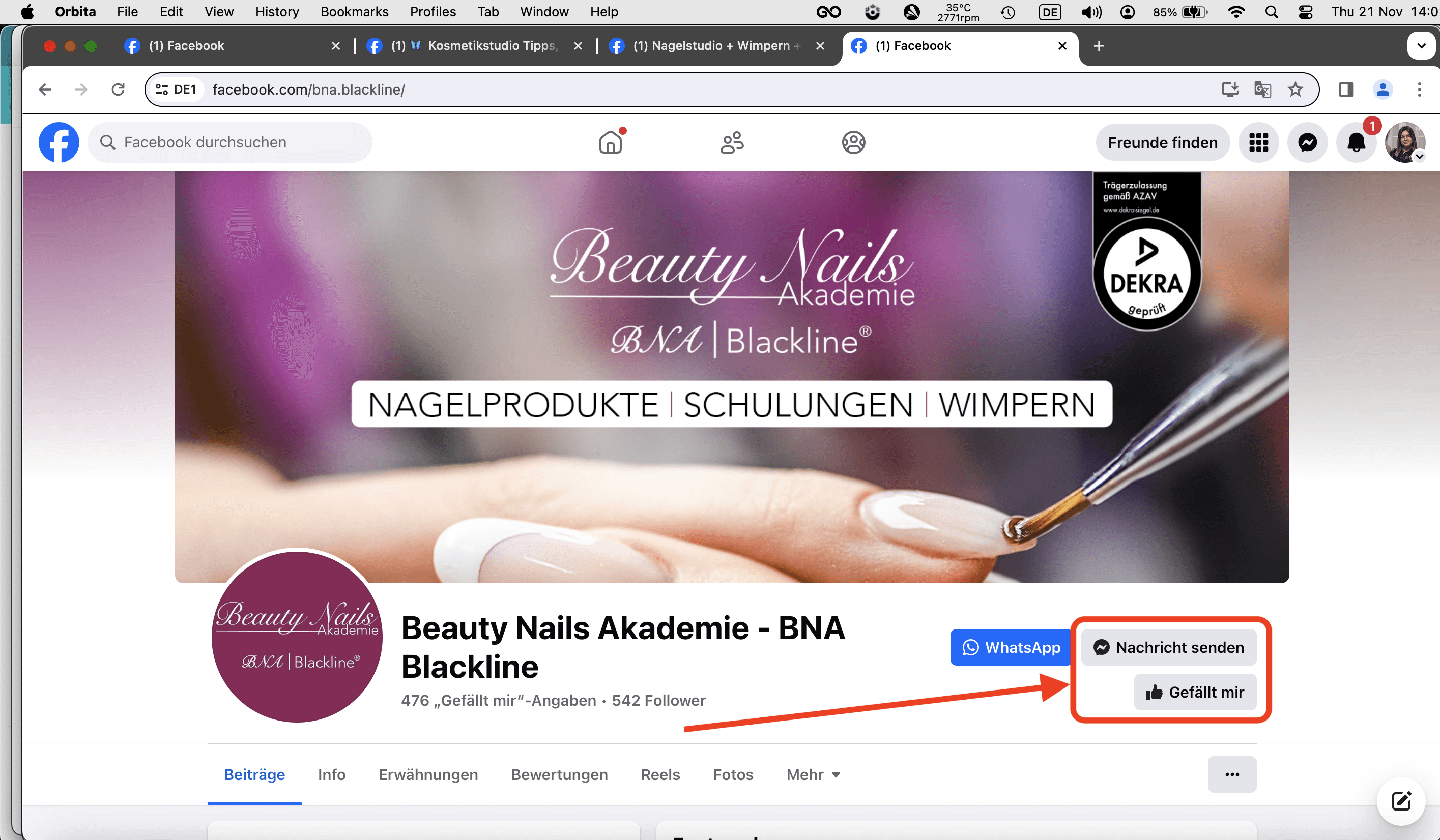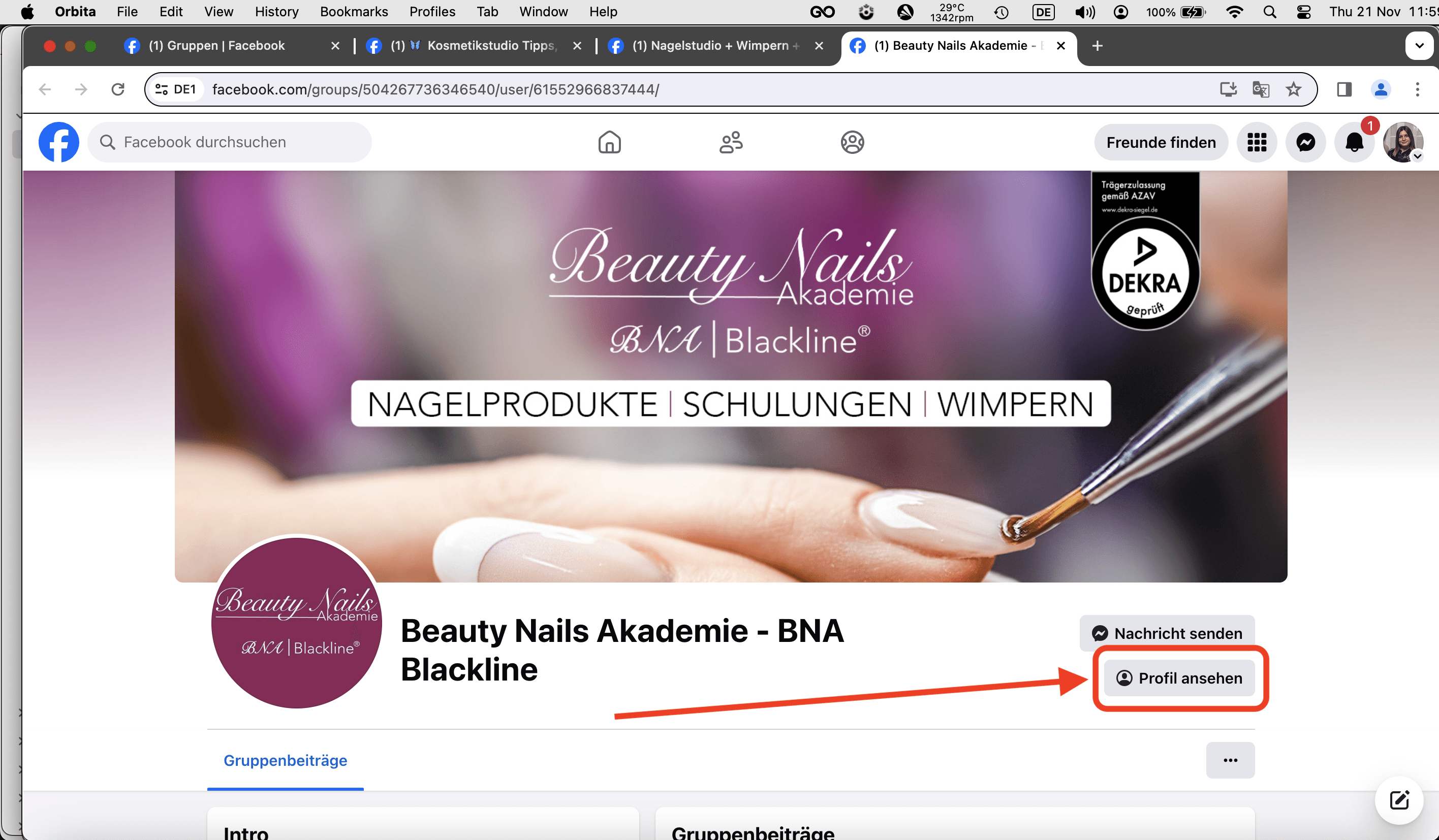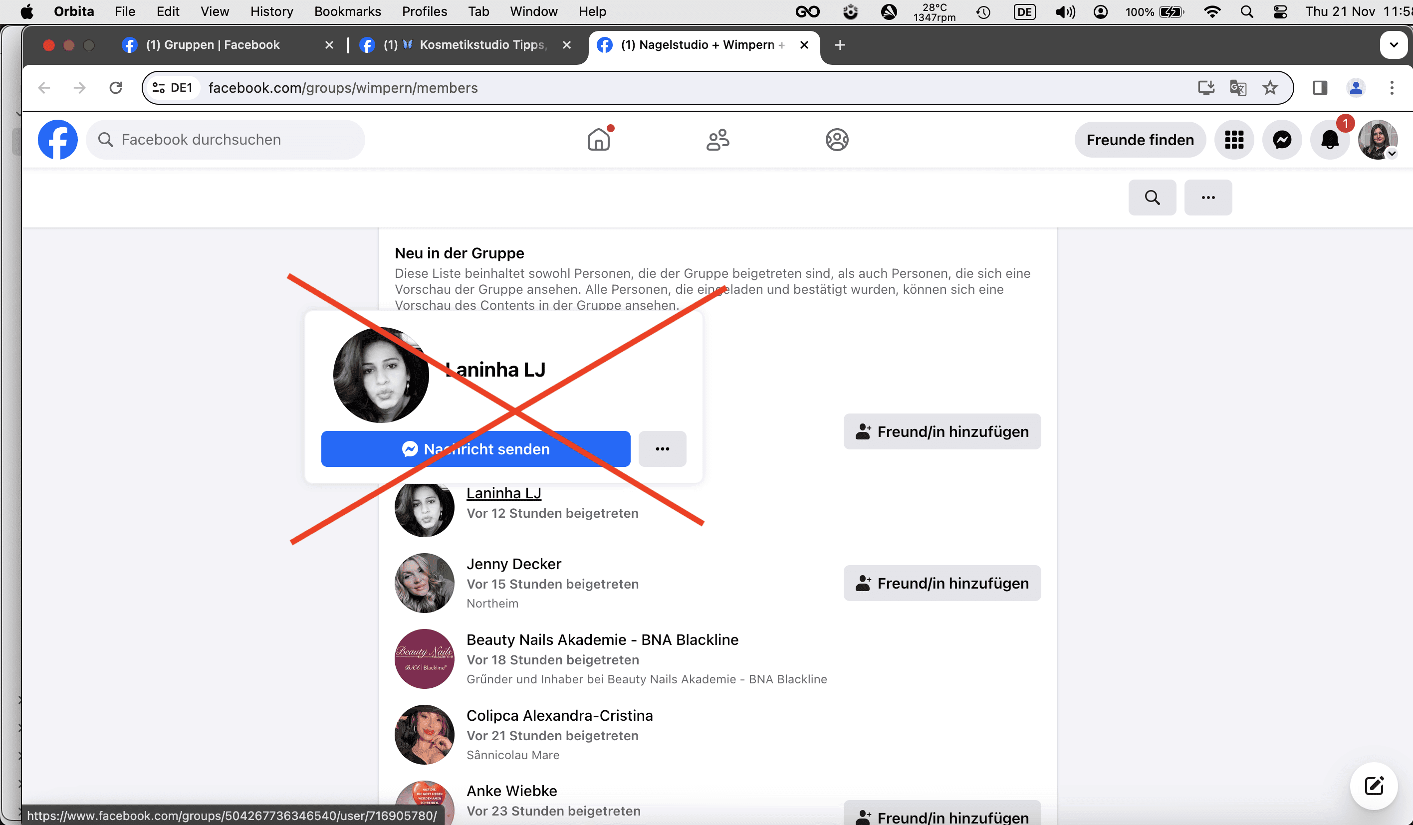 Schaut nach Gruppen, wo sich Kosmetikstudios hauptsächlich anmelden, nicht Gruppen, wo hauptsächlich Privatleute reingehen
